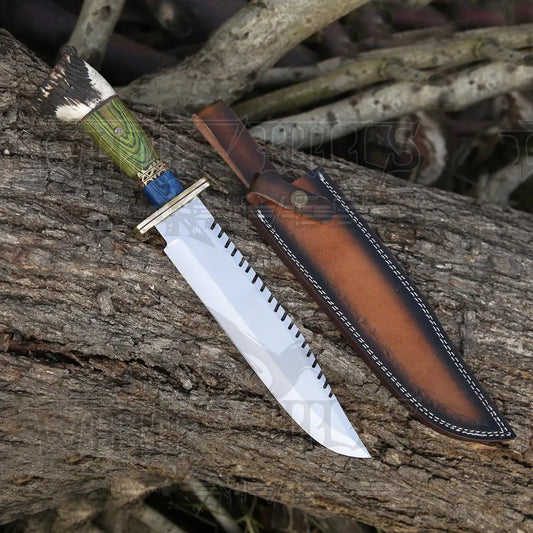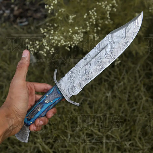 15" Handmade Damascus Steel Bowie Hunting Knife- Full Tang - Colored Wood Handle