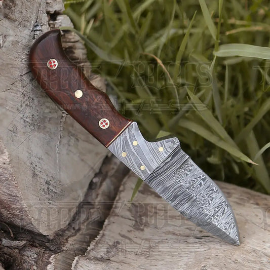 7.25” Handmade Forged Damascus Steel Full Tang Skinner Knife - Dark Wood Handle