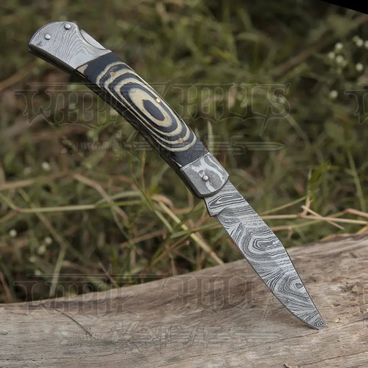 Back Lock 9" Handmade Damascus Steel Pocket Knife Pakka Wood Handle Folding Knife WH 5009