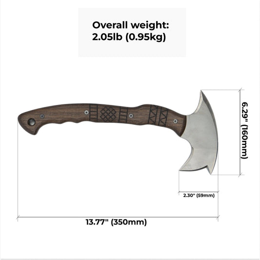 Handcrafted tomahawk "Takoda" with tribal engraving