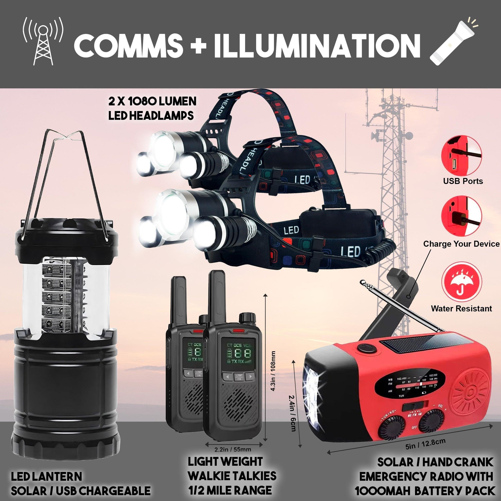1000mah Emergency Radio and Charger: Solar-powered radio for emergency information and device charging. (QTY: 1) |