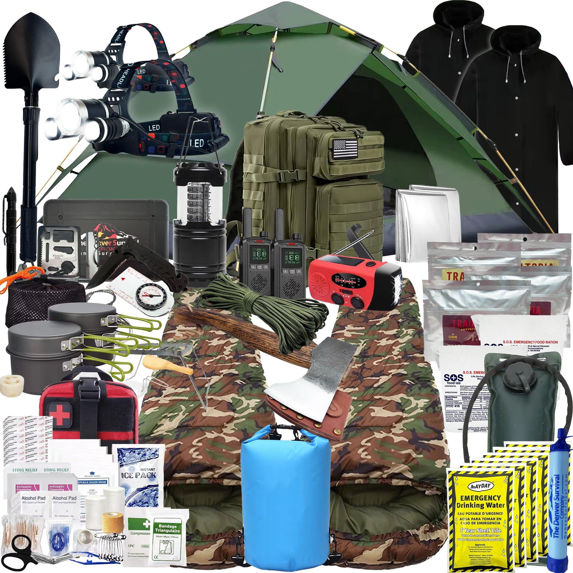 2 Person 5 Day Survival Bags with Survival Kit Tools and Camping Equipment