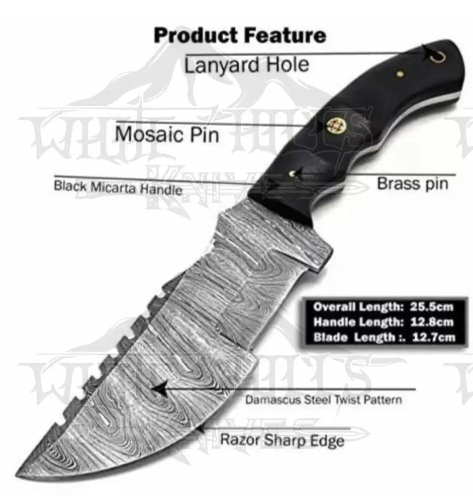 Custom Handmade Forged Damascus Steel Tracker Hunting Bushcraft Knife Survival EDC 10” With Micarta Handle WH 9010